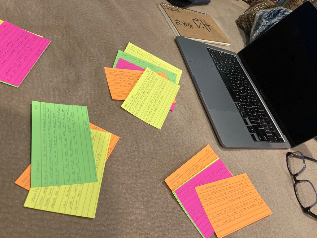 This is when it started to come together for me. I could start seeing a natural flow of thought starting to form. I was breaking down each thought into clear bullet style points on index cards and then I arranged them in an organic flow and that is the point where I started to create the chapters.