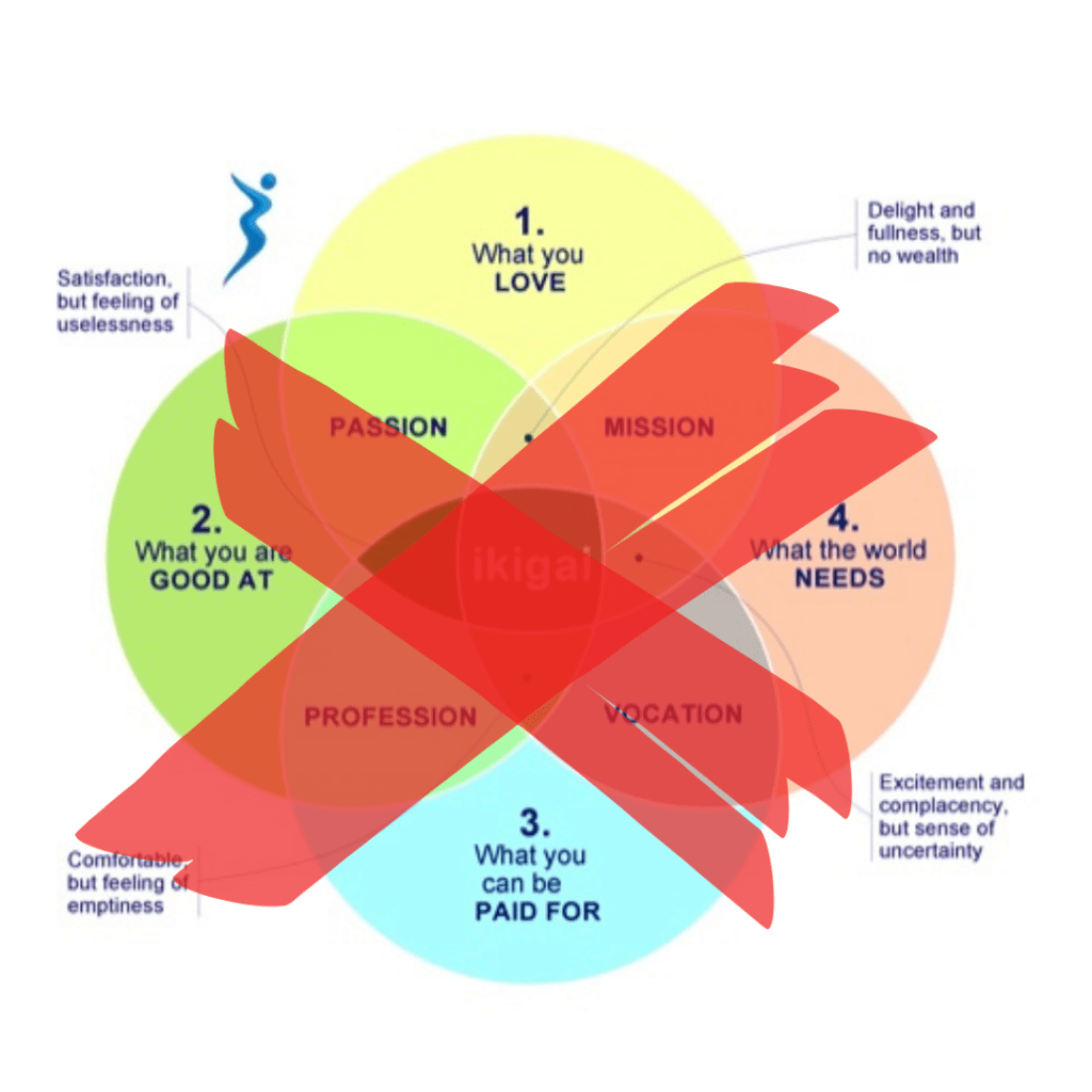 The things that make you feel alive and bring joy to your life don’t have to have anything to do with the work you are doing. The popularized ikigai diagram that you have no doubt sense is not all what the Japanese mean when they talk about ikigai. That Venn diagram is a westernized interpretation of the word.
