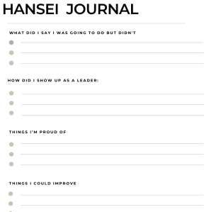 As I am making my way through the weeks, I am referencing the Quarterly Planner to make sure I stay on track. The other practice I have adopted that creates exponential gain for me is to do a regular self-reflection process called hansei. It is a Japanese practice that literally is interpreted as self-reflection.
